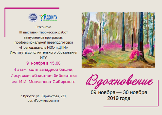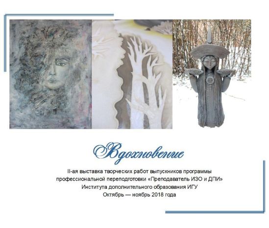 ВДОХНОВЕНИЕ. IV ВЫСТАВКА ТВОРЧЕСКИХ РАБОТ СЛУШАТЕЛЕЙ ПРОГРАММЫ ПРОФЕССИОНАЛЬНОЙ ПЕРЕПОДГОТОВКИ "ПРЕПОДАВАТЕЛЬ ИЗО И ДПИ",